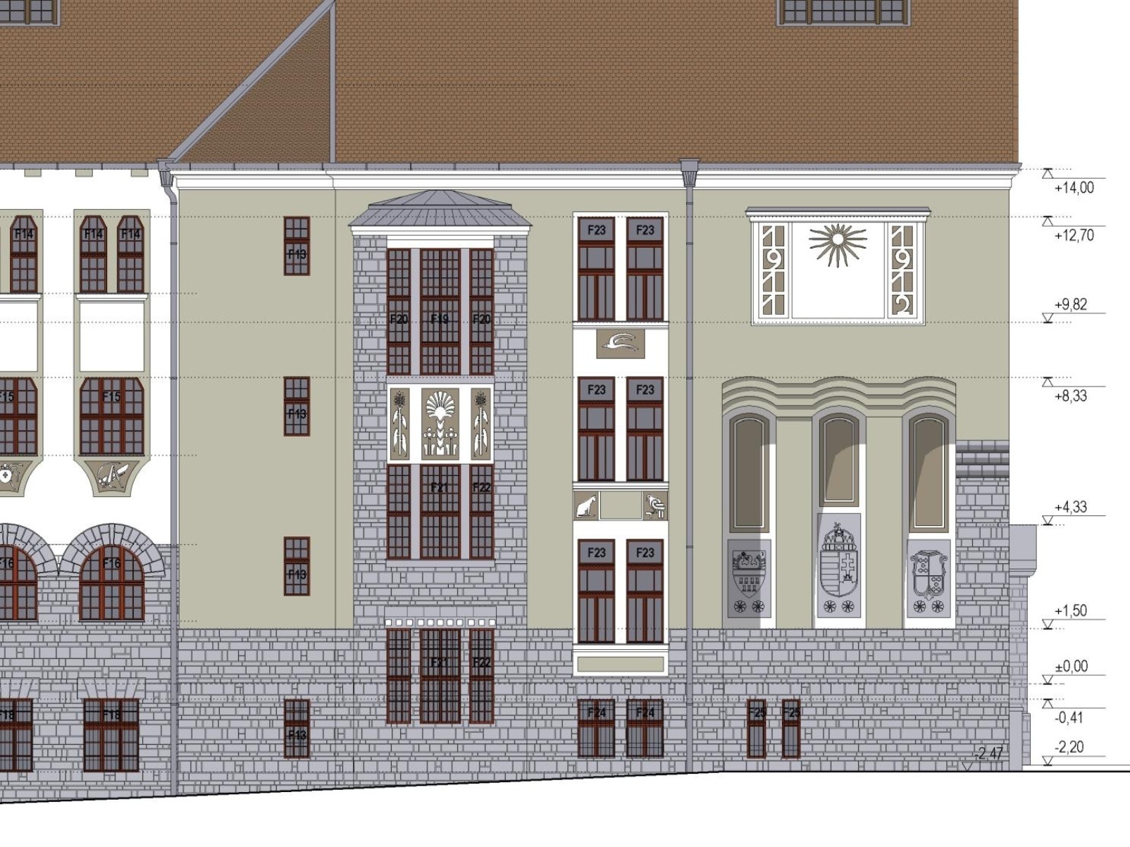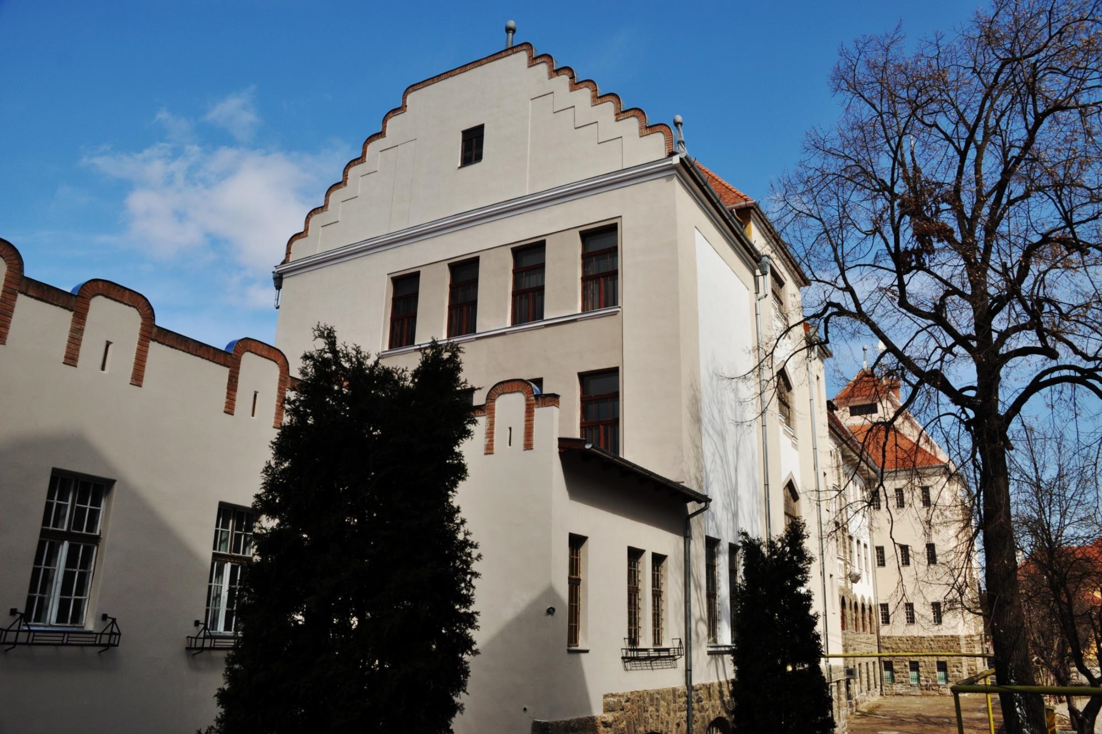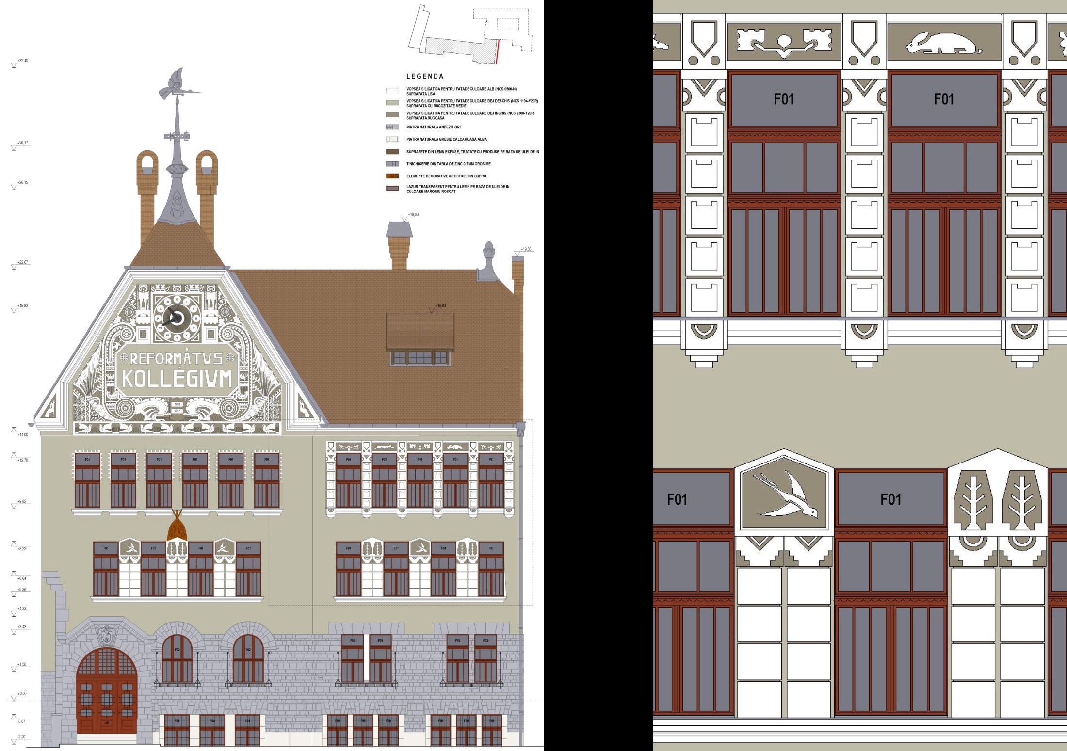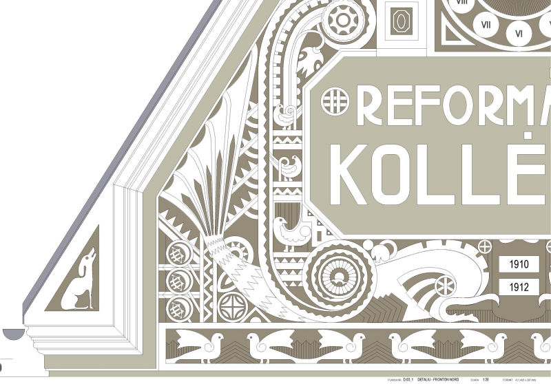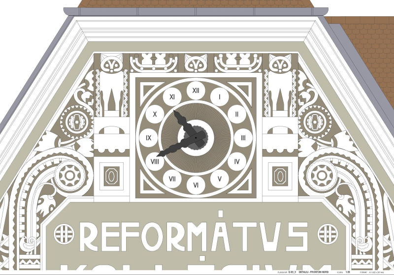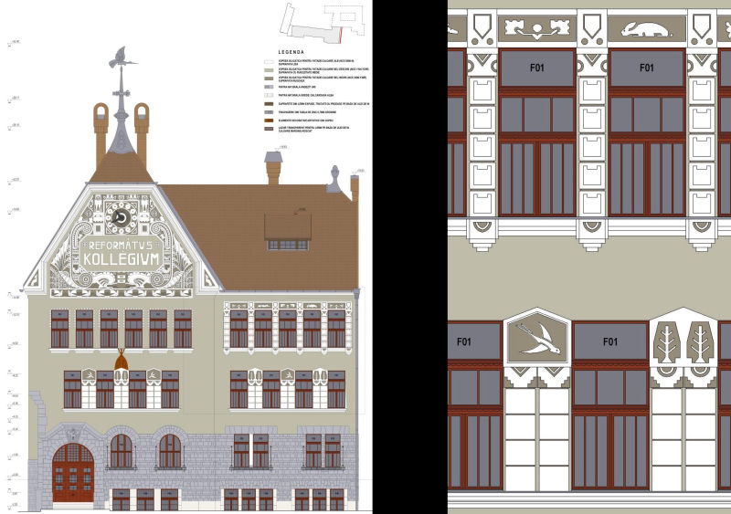 The school building built between 1910 and 1912 is the result of an architectural competition won by architect Magyar Vilmos of the 17 participating projects. Considered flagship contemporary architecture at the time of edification, we encounter both technological innovations and artistic sculptural elements that show an uncommon devotion at the Reformed College's "new" building. During its over 100 years existence the interventions were limited to current maintenance and strictly necessary repairs, resulting in serious damages on the spectacular roof structure and on the highly ornamented facades. There was an urgent need for extensive rehabilitation works on the ranked historical monument of regional interest.